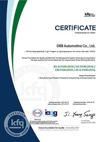 KS Q 9100(航空航天质量管理体系,等同于 AS9100D) 인증서 정보